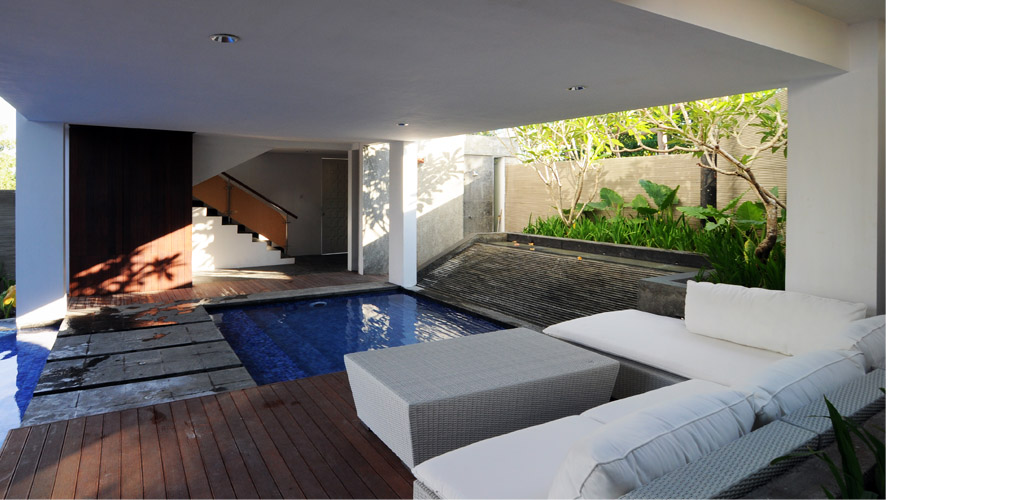 Hanya karena komunitas pemilik didaerah ini cukup banyak dan kerap dilakukan pertemuan, maka ruang tamunya sengaja dibuat luas. Area privat ditempatkan di lantai atas, bahkan terdapat ruang kerja pemilik tidak jauh dari kamar tidur utama yang juga mempunyai view menghadap kearah laut.